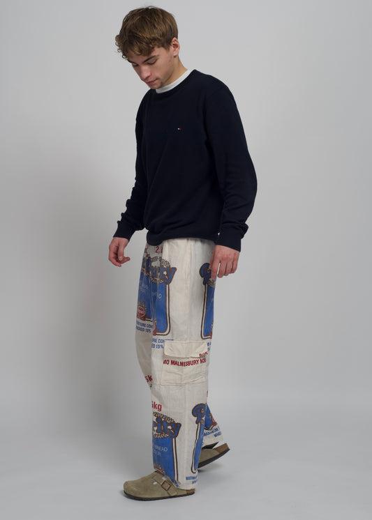 Our story begins in Cape Town, South Africa, where Matt came across a distinctive pair of ‘flour bag pants’. These garments have their roots in hardship, when people would turn old flour sacks into clothing, as money for new clothes was scarce in what was then — and still remains — a deeply unequal country. From those beginnings grew a design so striking that it has stood the test of time, now reimagined in 100% soft African cotton rather than the rough sacks of the past.